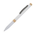 Długopis aluminiowy o satynowym wykończeniu, ozdobiony bambusowymi elementami. Niebieski wkład.