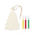 Zawieszka choinkowa z drewna topoli z 3 flamastrami do kolorowania i sznurkiem jutowym.