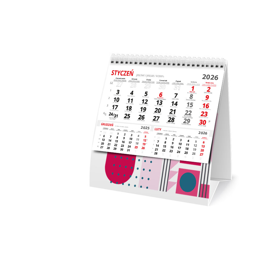 Kalendarz biurkowy piramidka 165x200mm spiralowana. Indywidualny projekt podkładu. Gotowe standardowe kalendarium.