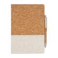 Zestaw składający się z notesu wykonanego z korka i płótna oraz długopisu. Rozmiar A5, 80 kartek w linie (gramatura 70g/m2). Długopis wykonany z korka, słomy pszennej i PP. Zestaw pakowany w kartonowe pudełko.